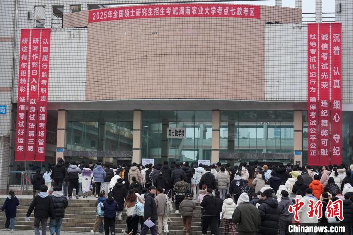 12月21日,2025年全國(guó)碩士研究生招生考試初試開(kāi)考,眾多考生來(lái)到湖南農(nóng)業(yè)大學(xué)考點(diǎn)參考。據(jù)教育部數(shù)據(jù)顯示,2025年全國(guó)碩士研究生報(bào)名人數(shù)為388萬(wàn),相比去年下降50萬(wàn)人,已是連續(xù)兩年報(bào)名人數(shù)下降。圖為志愿者將椅子與取暖設(shè)備送入考場(chǎng)。中新社記者 楊華峰 攝