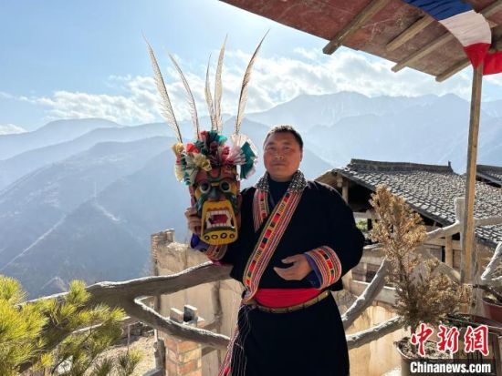 雕刻、打磨、上色……甘肅隴南市文縣鐵樓藏族鄉(xiāng)強(qiáng)曲村,白馬人薛剛一家四代人都精于木工。日前中新網(wǎng)記者走訪村子時,薛剛坐在自家院子里,伏案制作池哥晝所用面具。池哥晝是白馬人保留最完整、最具特色民族舞蹈,面具是重要道具之一。薛剛制作的面具不僅用于周邊村子的池哥晝中,而且被廣州、上海等地的客商購買收藏。他時常將自己的想象融入面具中,用心打磨使其更具“靈氣”。他說,白馬人中從事面具雕刻的手藝人不多,最近他物色了一個“00后”徒弟,對方興趣濃厚,希望將這門手藝保護(hù)傳承好。圖為薛剛在院子里雕刻面具。閆姣 攝