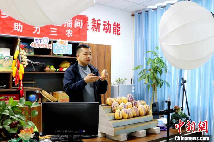 “民勤人參果,清甜多汁,營(yíng)養(yǎng)豐富,五斤大果僅售29塊9。”12日晚,甘肅省武威市民勤縣“95后”小伙張煜文在自家的直播工作室對(duì)著鏡頭展示新鮮的人參果,同時(shí)回答直播間里消費(fèi)者的各種問(wèn)題。