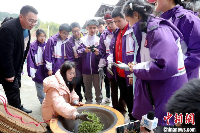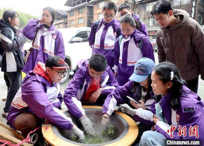 3月15日至16日,廣西柳州市一所中學(xué)組織千人研學(xué)團(tuán)到三江侗族自治縣八江鎮(zhèn)布央村仙人山景區(qū)開展茶文化研學(xué)活動,沉浸式采春茶、炒春茶、品春茶,深入了解茶種植、茶制作、茶文化、茶品鑒等知識,進(jìn)一步培養(yǎng)實(shí)踐能力、提高勞動素養(yǎng)。圖為研學(xué)活動現(xiàn)場。龔普康 攝