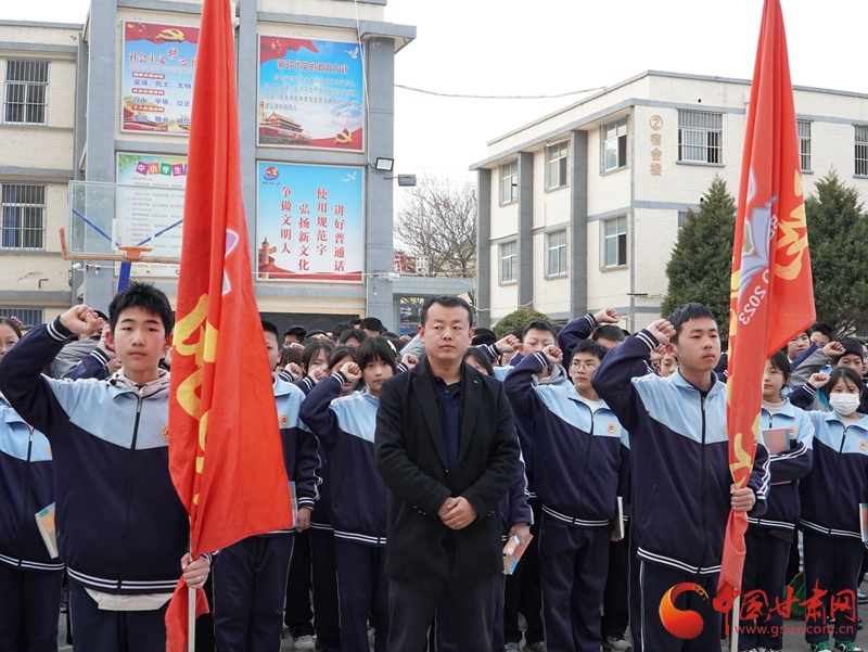 上午8時30分,華池縣列寧學校內莊嚴肅穆,華池縣柔遠初中、華池二中、城壕初中、山莊初中、列寧學校師生及各界代表懷著崇敬的心情列隊集合,舉行出征儀式。5所學校16支先鋒隊被授予“紅色傳承先鋒隊”旗幟,隨后師生代表吹響沖鋒號揮旗出發(fā),開啟這場特別的旅程。