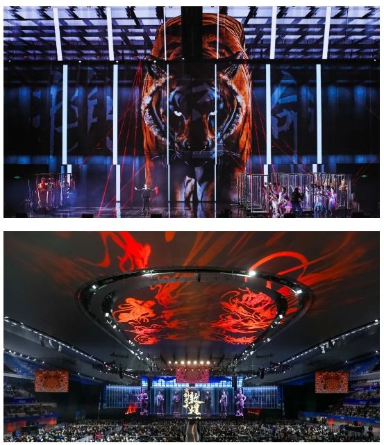 該劇最大的亮點(diǎn)在于創(chuàng)新性藝術(shù)融合,將非遺、科技、禪意、潮流、AI融入先鋒音樂話劇,打破傳統(tǒng)觀演模式和傳統(tǒng)舞臺(tái)結(jié)構(gòu),巧妙植入演唱會(huì)、音樂劇、話劇、舞劇甚至是電影多種藝術(shù)表現(xiàn)形式,通過人工智能、影視化、動(dòng)畫真人融合等最新科技賦能舞臺(tái),實(shí)現(xiàn)“戲劇+影視+Live”多種藝術(shù)場域的融合,“創(chuàng)造”了既現(xiàn)代又滿載中國審美的“敦煌”空間,讓觀眾沉浸體驗(yàn)敦煌文化的輝煌與魅力。
