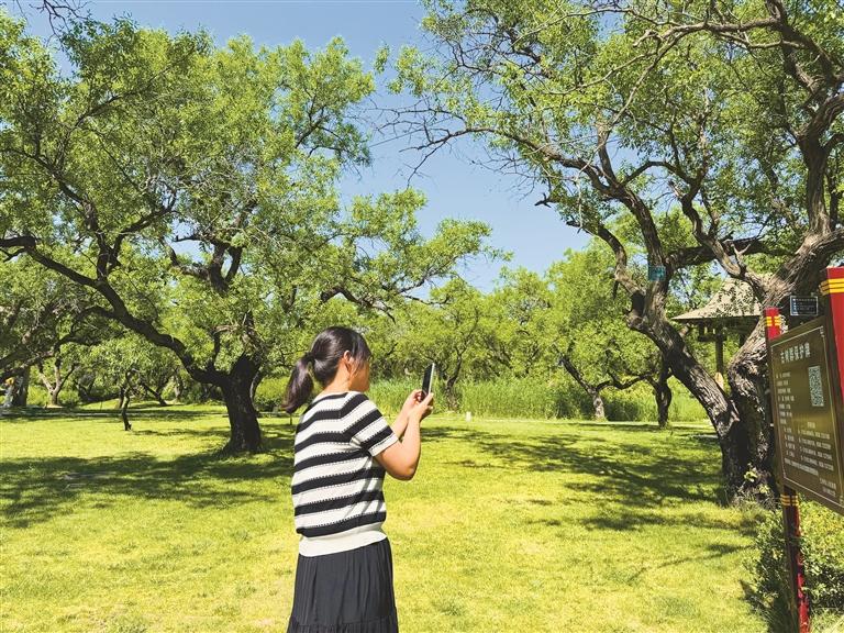 市民在仁壽山古棗樹群內(nèi)掃碼查看古棗樹群詳細信息