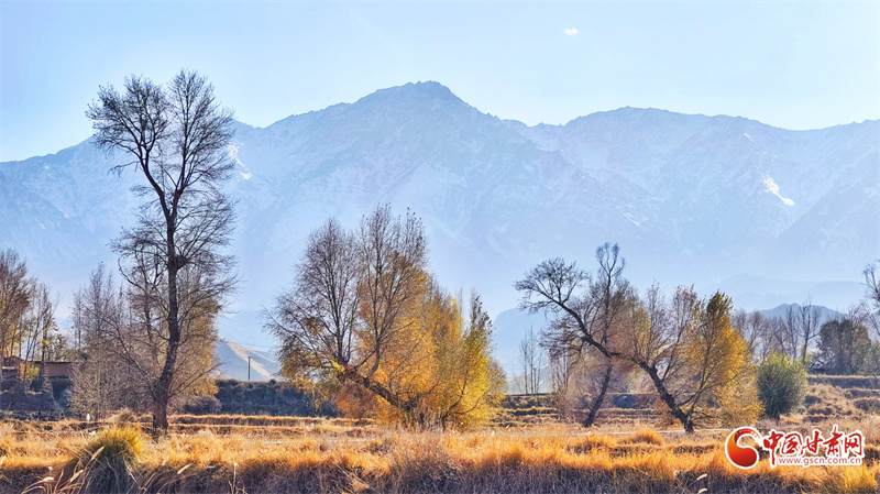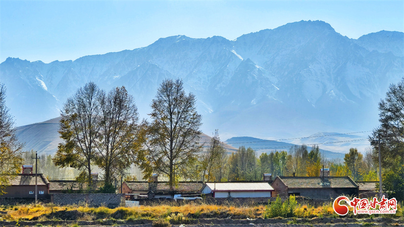 初冬時節(jié),張掖市民樂縣南古鎮(zhèn)柳谷村景色宜人。巍峨的祁連山脈連綿起伏,山腳下,萬畝良田阡陌縱橫,黃綠相間的樹木點綴其間,為大地暈染出豐富的色彩層次,盡顯祁連山下冬日的獨特韻味。