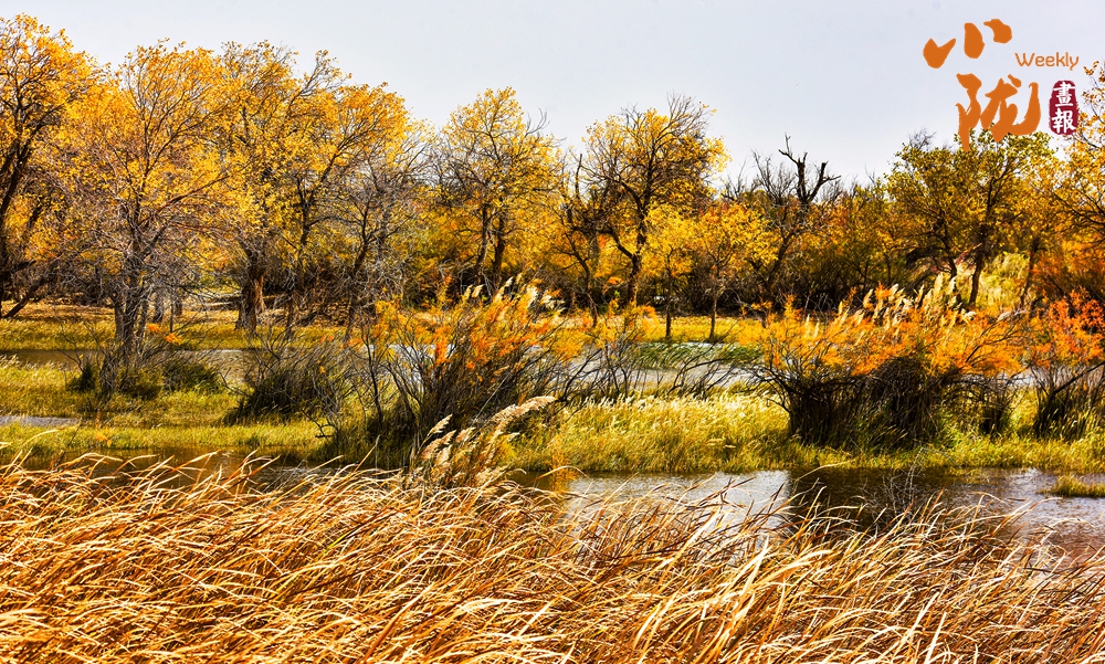 每到冬季,濕地的胡楊換上金黃盛裝,與穿梭其間的湖水、溫暖柔和的蘆葦蕩,繪制成一幅水墨長卷,將初冬的浪漫鋪滿天地。