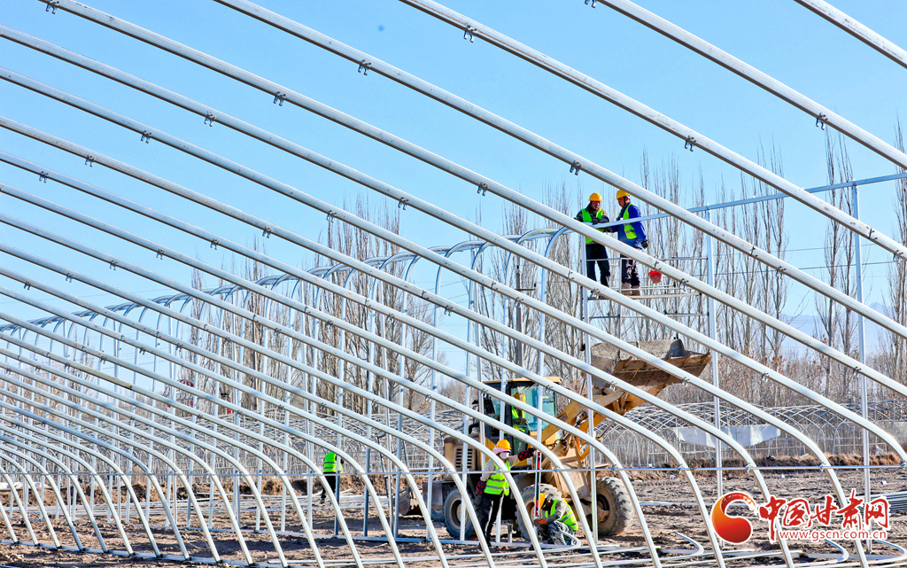 時值隆冬,張掖市高臺縣巷道鎮(zhèn)紅聯(lián)村設(shè)施蔬菜產(chǎn)業(yè)基地上,40座高標(biāo)準(zhǔn)鋼架棉簾大棚正在加緊施工。工程建設(shè)者們不畏嚴(yán)寒,忙碌地進行日光溫室棚體的焊接與固定,同時安裝水肥一體化設(shè)備、卷簾機、自動通風(fēng)系統(tǒng)等配套設(shè)施,全力確保超過24000平方米的高標(biāo)準(zhǔn)溫室在年底前順利竣工。該項目將為冬春季蔬菜種植打下堅實基礎(chǔ),進一步助力群眾增收。
