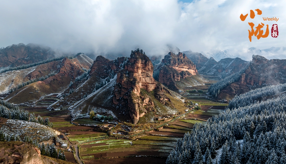 雪后天晴,煙波浩渺,山色空蒙,朱紅色的丹霞與蔥郁的森林、皚皚白雪相映成趣,展現(xiàn)出冬日里別樣的壯麗與靜謐。