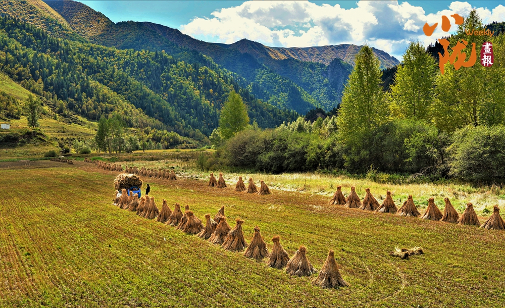 金沙峽依舊滿山蒼翠,似濃墨潑就。青稞地里,農牧民忙碌地將成熟的青稞收割、扎捆、拉運,豐收的氣息彌漫著整個天祝大地。