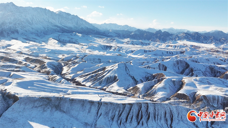 時下,位于民樂縣境內(nèi)的祁連山脈巍峨群峰被皚皚白雪覆蓋,蔚為壯觀。