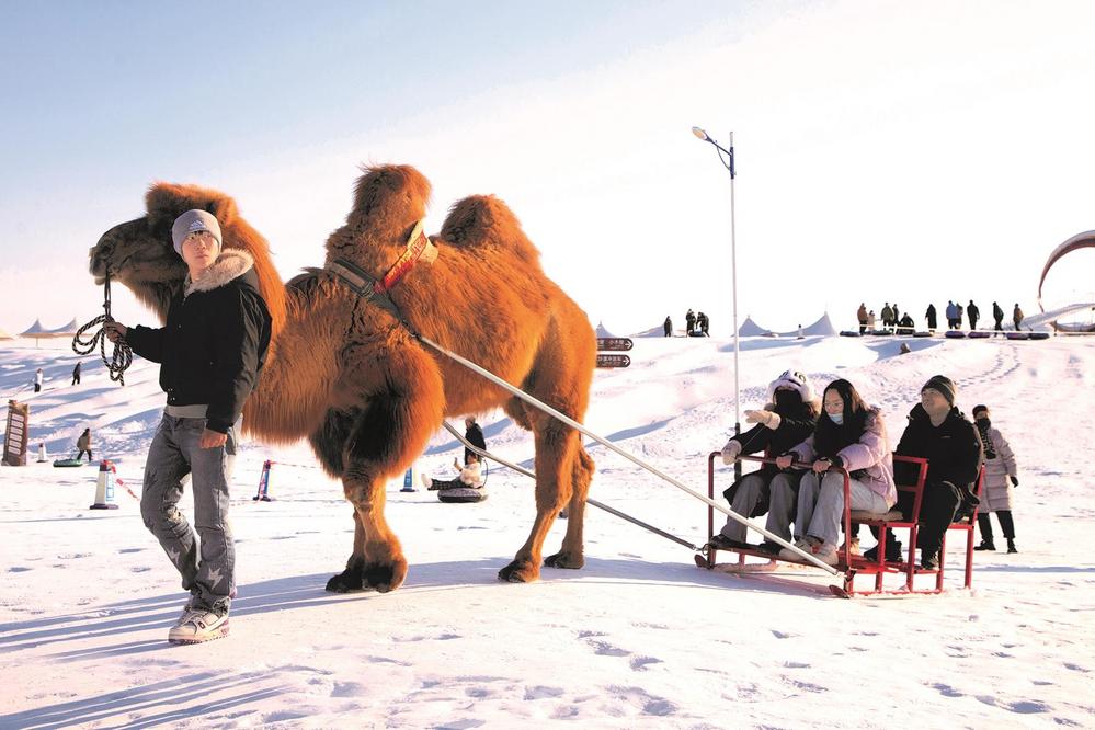連日來,眾多游客在張掖國家沙漠體育公園冰雪嘉年華體驗(yàn)冰雪樂趣,冰雪滑道、碰碰球、雪地摩托車、駱駝雪車等多樣的冰雪活動為市民游客獻(xiàn)上冬日文旅盛宴。 李自海 攝
