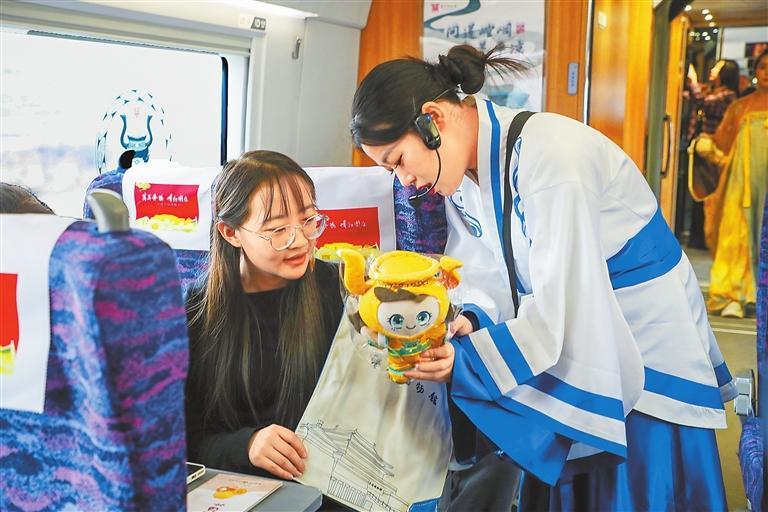 “昔日驛馬傳信需數(shù)月,如今高鐵朝發(fā)夕至。”前往廣州的旅客趙露望著窗外掠過的風(fēng)景,感慨萬千,“這趟列車太有創(chuàng)意了,它打破了博物館的圍墻,讓隴原文化沿著鐵軌,從黃河之畔傳到珠江之濱,讓更多人了解到隴原大地的文化底蘊。”