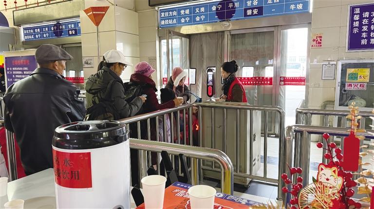 清晨六點的蘭州客運中心,一抹抹“志愿紅”已在晨曦中閃動。“大爺,行李我?guī)湍嗌宪?,您慢著點”“阿姨,母嬰室往這邊走,里面有專用休息區(qū)和消毒柜”……親切的引導、主動的幫扶,讓匆忙的歸途多了幾分從容。務工返鄉(xiāng)的老李接過志愿者遞上的“福”字窗花,笑容舒展:“每年這時候,一到車站就碰上熱心人,心里踏實,像提早到了家。”